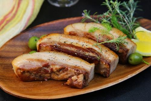 ゆで卵、プロセスチーズの燻製は時間をかけずに作ることができる。15分ほどでしっかり燻製色がつき、とても美味しい。そのほか、豚のバラ肉を使ってベーコンもどきを作ることもできる。ポイントは、下処理として豚肉に塩と砂糖、オールスパイスをもみ込んでおくこと。燻す時間は30〜40分ほどでOKだ。食べるときは、肉汁が出ないよう、粗熱が取れてからカットすること。
