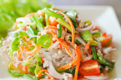 春雨サラダはツルっとした食感で食べやすく、調理時間もあまりかからない人気メニューだ。今回はこの春雨サラダから、摂取できる栄養について見ていこう。春雨サラダに使われる、国産春雨の主な原料はいも類などのでんぷん。つまり、春雨サラダから摂取できる栄養は、主に炭水化物だ。ここにキュウリや人参、ハムといった食材が加わる。たんぱく質を摂取したいときは、鶏ささみやたまごを加えてみよう。