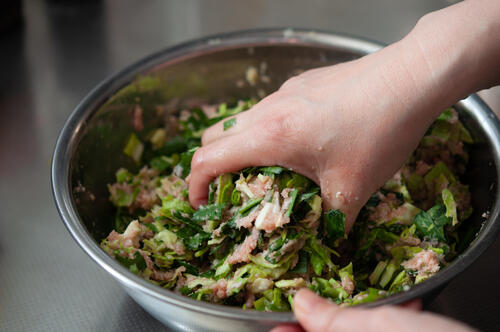野菜たっぷりの餃子を作る際に、入れることが多いのがキャベツや白菜。この2つは基本の具材としてよく使われている。実際にこだわりをもってキャベツ派か白菜派かに分かれることもあるだろう。キャベツや白菜を餃子の具材として使う場合は、どちらも細かく粗みじん切りしておくのがおすすめだ。白菜の場合は、縦に細く切ってから小口切りにすると細かく切ることができる。