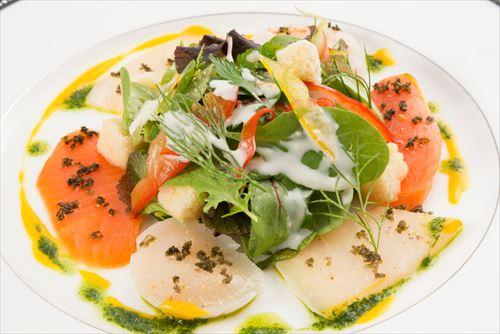 生魚やタコ、ホタテなどの刺身と生野菜を彩りよく盛り付け、オリーブオイルやドレッシングで味付けした料理だ。作り方は非常に簡単だが豪華でおしゃれな印象のため、誕生日に最適である。