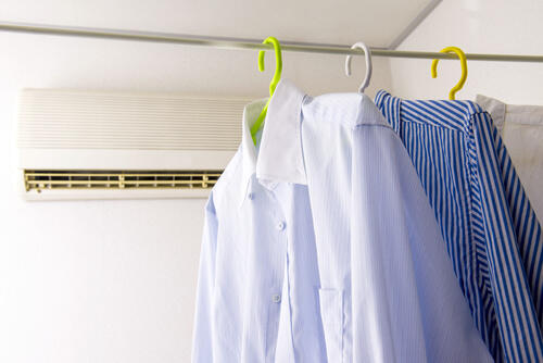 エアコンに搭載されたドライ機能は、部屋の湿度を取ること。だからこそ、洗濯物の部屋干しに使うととても便利だ。部屋干し独特の臭いも抑えられる。