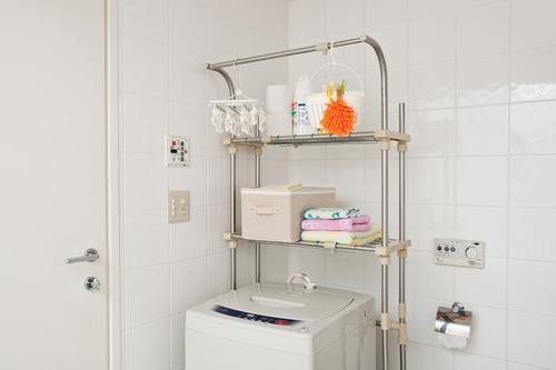 洗濯機の上部や横の隙間はデッドスペースになりやすい。洗濯機の上部を活用するためには、ランドリーラックを設置するのが効果的だ。洗濯カゴや洗剤などを置くスペースが生まれる。
