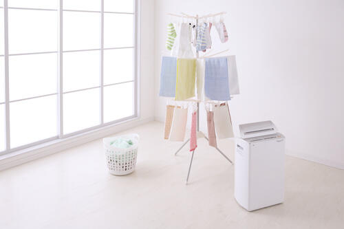除湿機は部屋の空気中にある水分を取り除く働きがあり、洗濯物に含まれる水分を蒸発させ乾燥を早めてくれる。