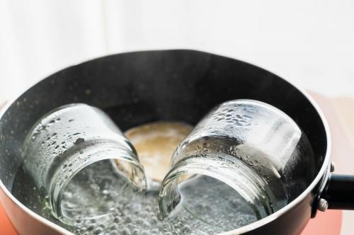 容器によっては熱に弱いものもあるので、耐熱温度は必ず確認しよう。とくにプラスチック容器は、熱湯をかけたり煮たりすると変形する場合もある。ガラスにも耐熱性があるものとないものがあるので、事前に確かめておくことが大切だ。熱に弱い素材は、アルコールなどで消毒するのがよい。