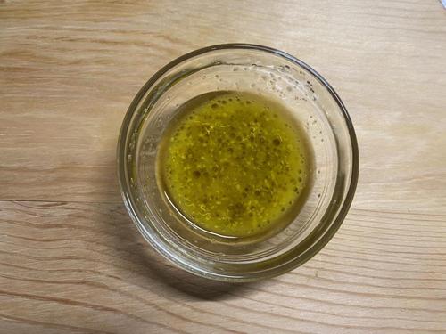 酢、オリーブオイル、粒マスタードを混ぜてドレッシングを作る。