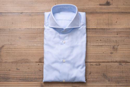 ホリゾンタルワイドカラーとは、英語で「水平」という意味を持つ通り、襟の角度が180度あたりまで開いていることが特徴だ。ネクタイとの組み合わせ次第で、上品にもカジュアルにも見せることができる。また、襟の角度が190度以上開いた種類は、別称でカッタウェイカラーとも呼ばれる。
